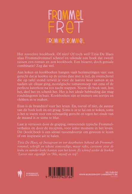 Het zoveelste kookboek. Of niet? Of toch wel? Titia De Haes aka Frommelrommel schreef en tekende met ‘Frommelfret’ een boek dat zweeft tussen een roman en een kookboek. Een bizarre, doch geniale combinatie? Zeg dat wel.